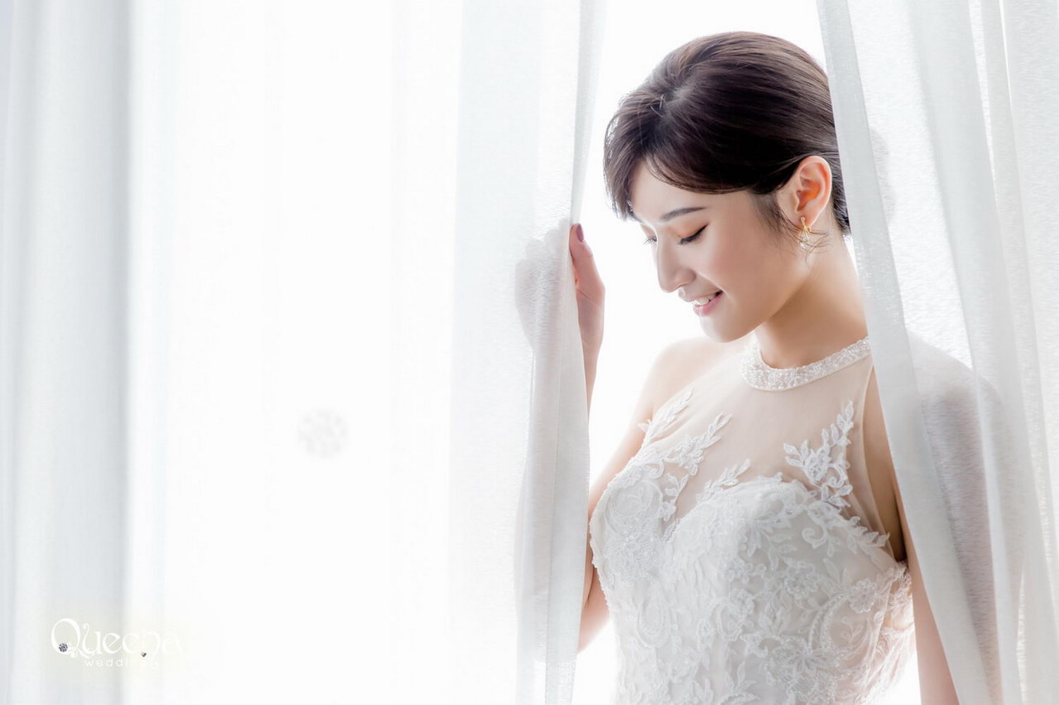2019.8.3是我們和Queena結緣的開始,當天帶著期待又怕受傷害的心情抵達台中,一進門就碰到Samatha熱情的接待,她細心的介紹各種包套內容和單租禮服方案,然後帶著我們參觀棚內及拍照、宴客禮服,跟她交談過程完全沒有壓力,反而讓我們很放鬆、自在。就在下樓後我立刻跟老公說不用考慮,就決定Queena了!我是服務業,自認為高標準及龜毛的我,Queena在第一關已經滿足我,不管是服務還是硬體,沒什麼好挑剔了!