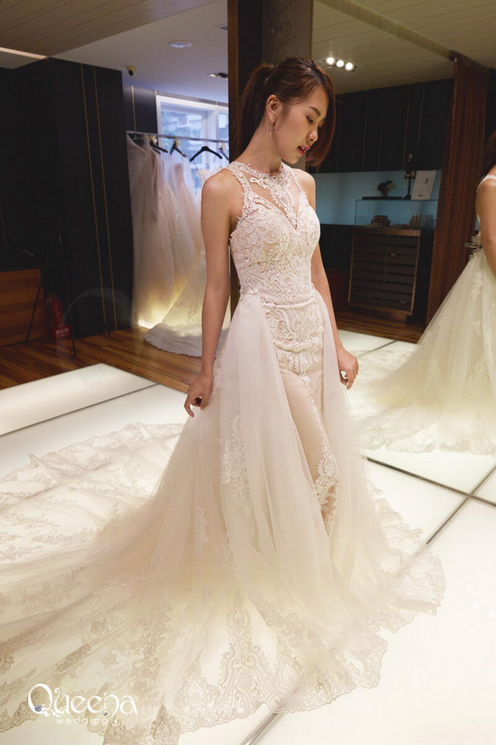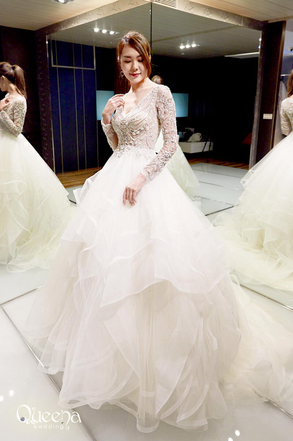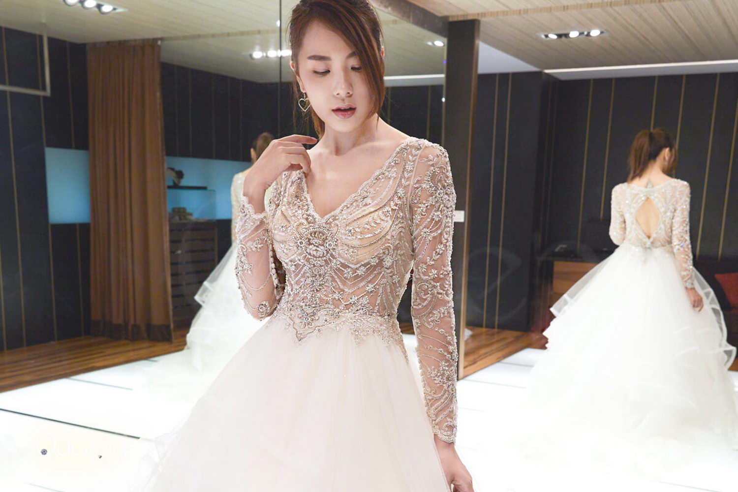 這次我試穿了好幾款歐美風格的 婚紗,實在太美了,好想全部款式都穿一次,強調細節與手工的訂製婚紗讓人眼睛為之一亮,如果你在尋找簡約一點的禮服,昆娜可以滿足你的需求,但如果你在苦尋的婚紗是性感女神風、歐美伸展台款、奢美華麗、經典蕾絲等的關鍵字,那昆娜絕對不會讓你失望,甚至會一次次地令你驚豔。