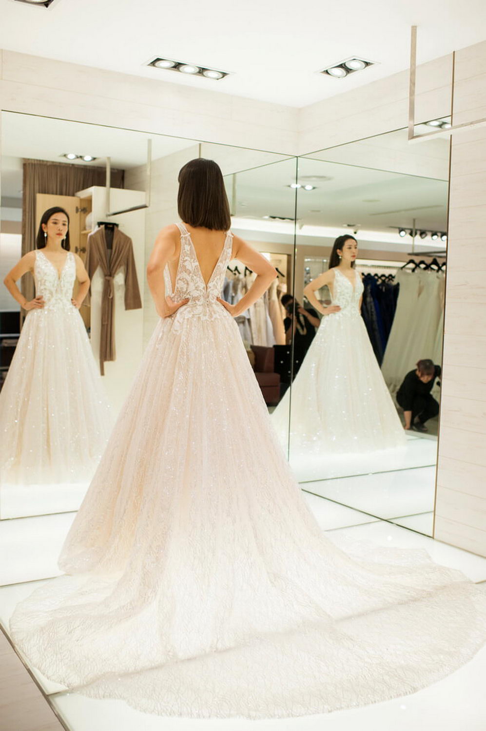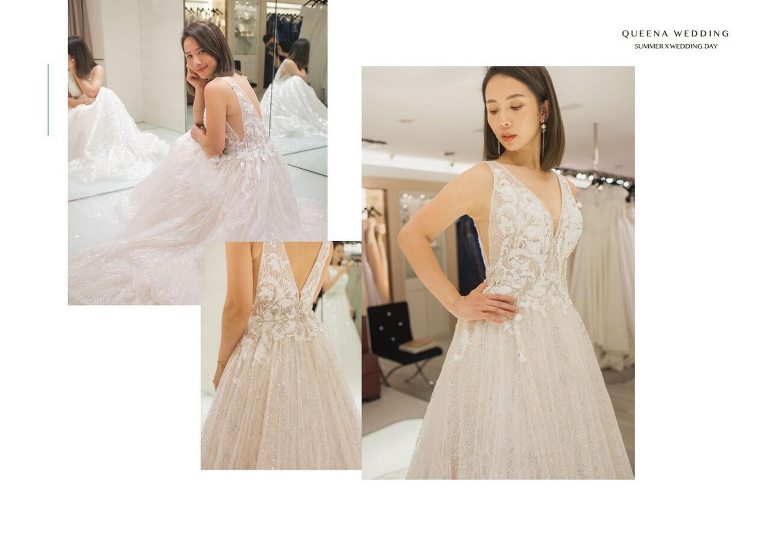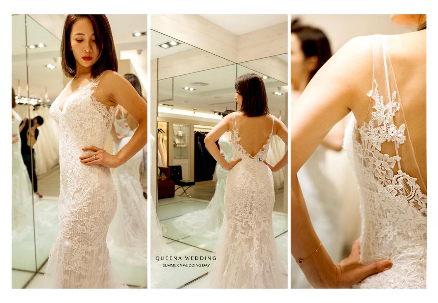 當天我試穿的婚紗每件都有吸引我的地方,婚紗的細緻手工一直是我最追求的,時常挑惕的我到離開才在想今天好像沒挑到什麼不喜歡的,連顧問們幫我別衣服的方式都讓我讚不絕口,讓人感受到尊榮的服務,愉快的笑聲還繚繞著,最讓我念念不忘的那件有著細細肩帶的魚尾、還有美式很仙稱之魔戒精靈公主款婚紗,讓我細細介紹這次試穿的五件婚紗。