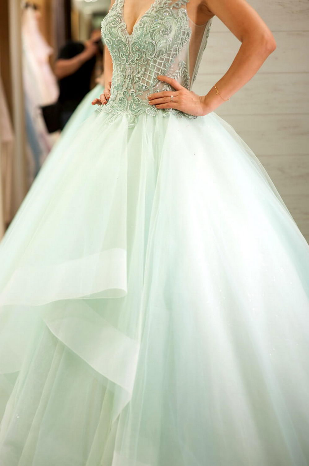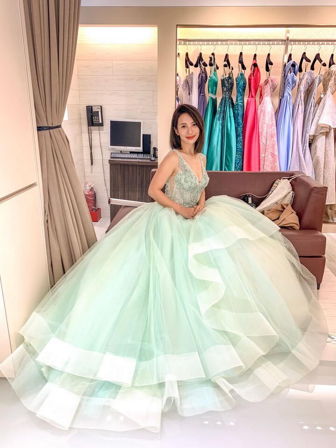 四、Camelia 高訂系列禮服-莫蘭迪綠蕾絲訂製款完美剪裁大澎裙