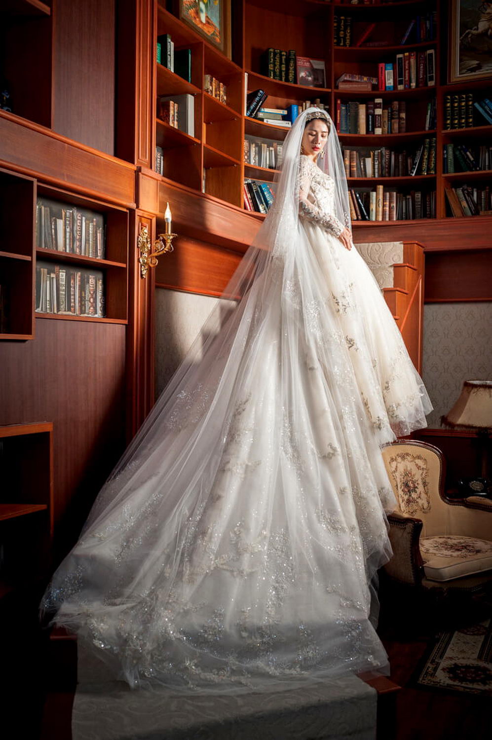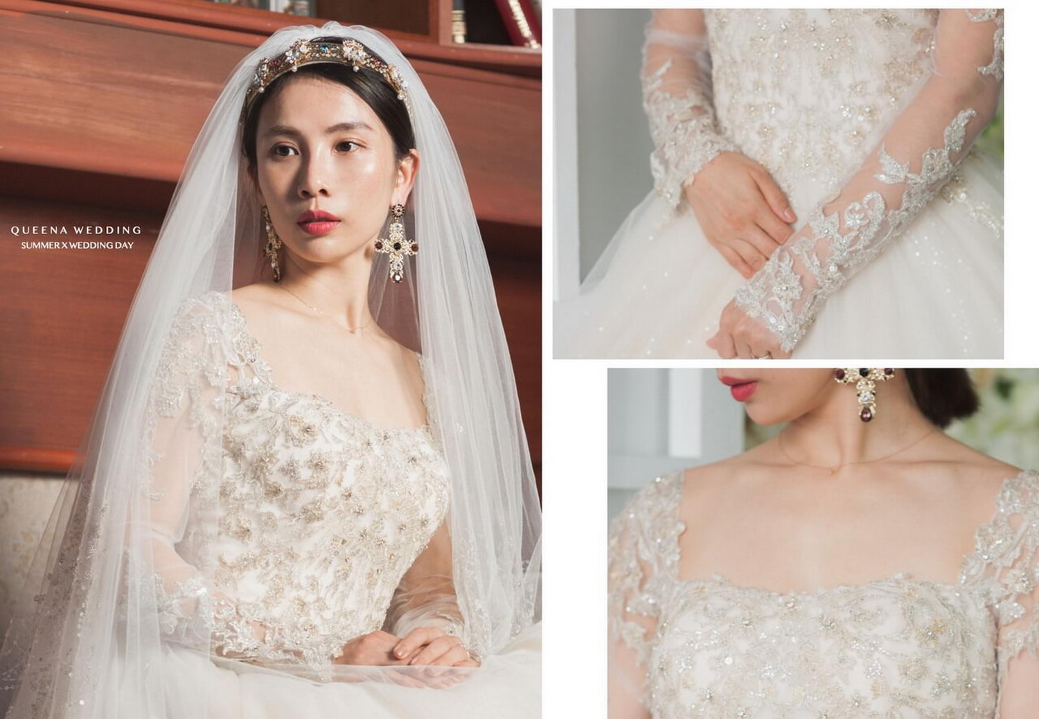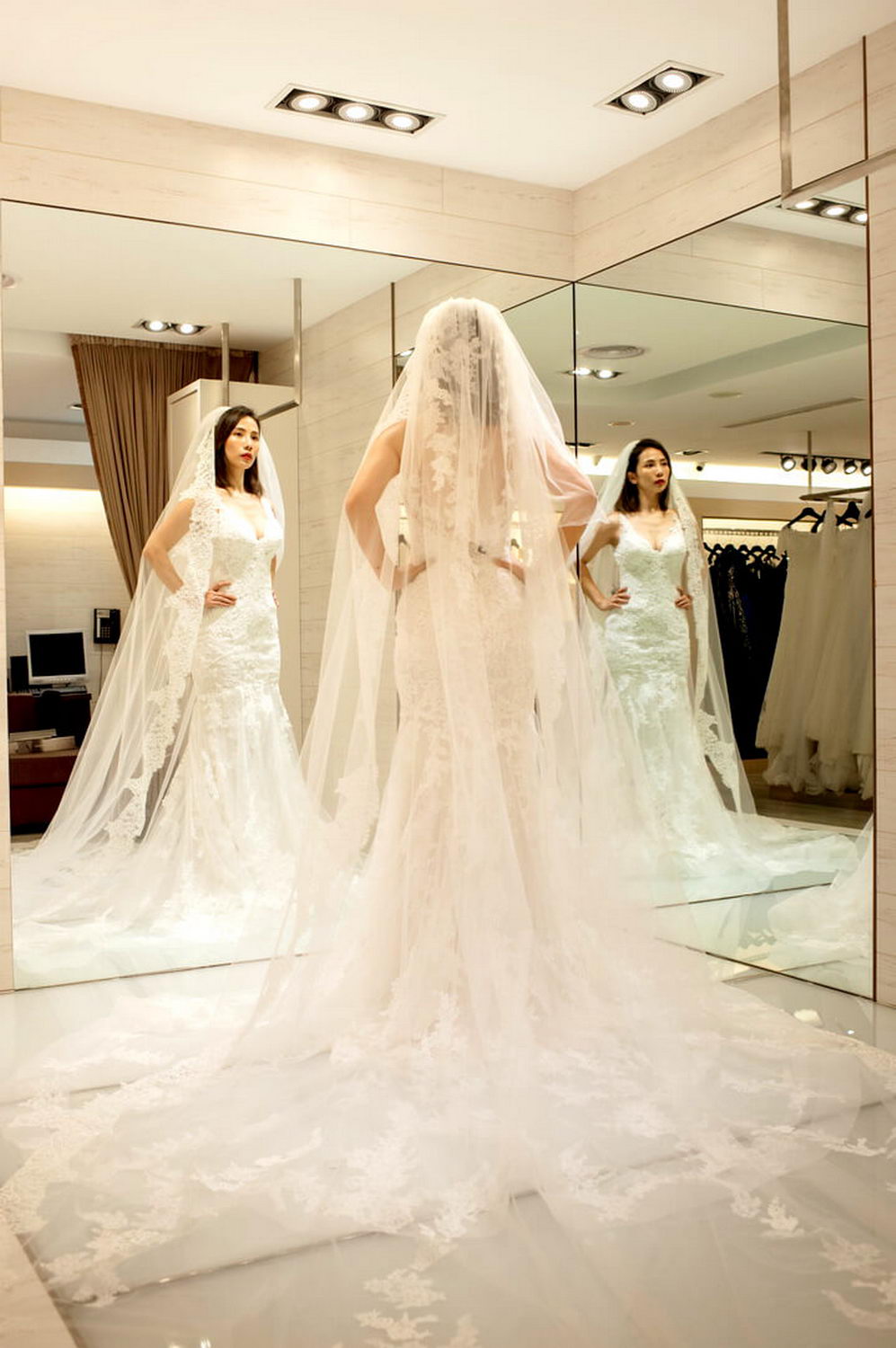 配上長長頭紗的模樣,昆娜的頭紗也有提供單租借服務。