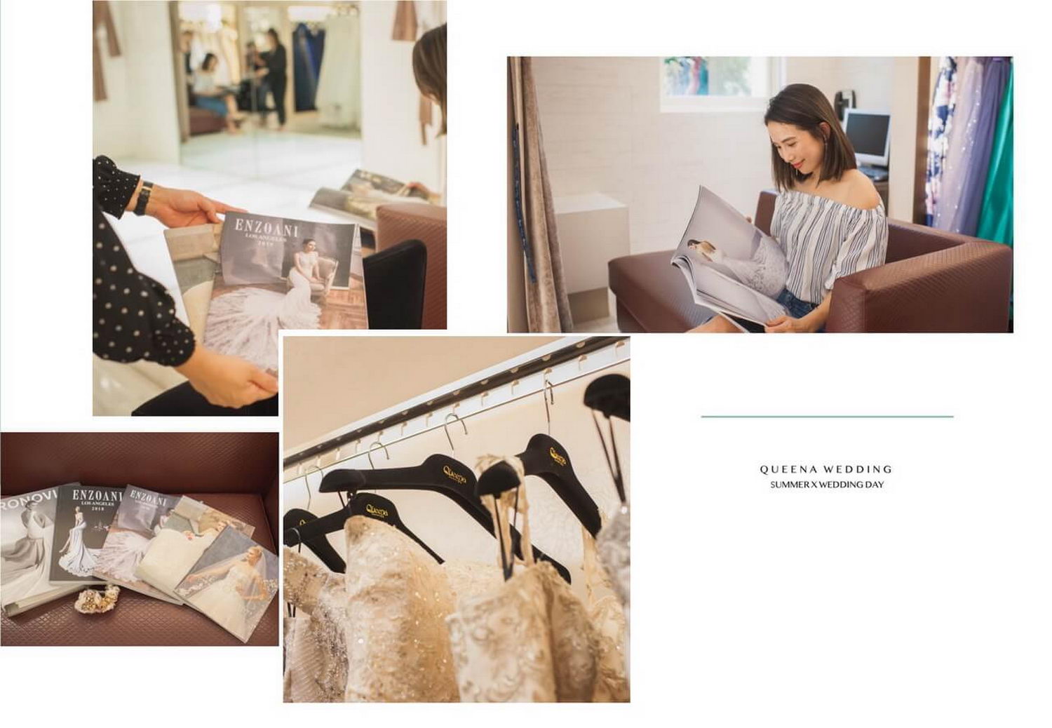 首次到台中試穿 婚紗 的我,這次主要期待著昆娜代理的歐美品牌、及台灣設計師品牌,旗下品牌『ENZOANI(這個真的超美)、CASABLANCA、Pronovias、蒂米琪Demetrios(我婚禮就是蒂米琪婚紗)、昆娜自創品牌Camelia,因為品牌眾多而且有我鍾愛的歐美品牌所以我的心因此而雀躍著,然而聽到顧問介紹著他們代理的歐美品牌都很講究,這真的很重要-就是都有依照『亞洲人身形去訂製』,顧問跟我清楚介紹亞洲人BP點、肩線、身長與外國人的差異,所以不要盲目因為歐美品牌而穿,有時候你看圖片很美但自己穿起來卻差強人意原來的是因為這些小細節,所以在這裡昆娜對於禮服的要求就是能讓昆娜新娘穿上最適合最美麗最女王的婚紗!