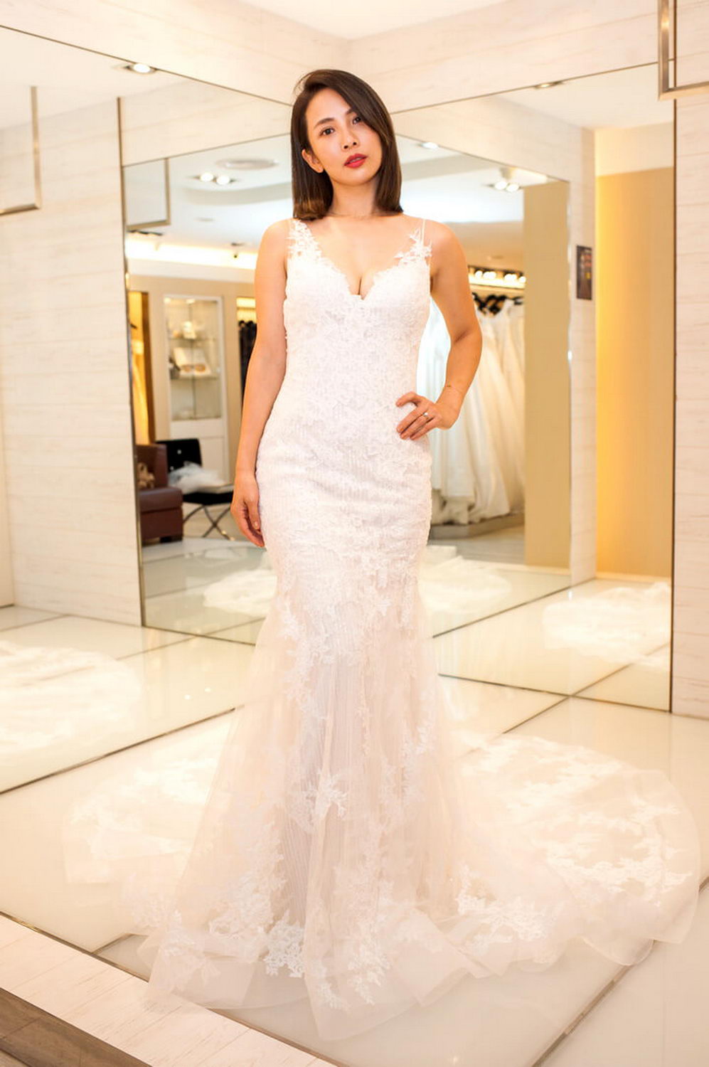 我一直以來最喜歡的莫非是這種顯身材的魚尾啦!但是我結婚的時候沒有試穿到這件(飲恨)這件真的神美,完全是我的菜,儘管我生完小孩後還沒回到過去身材,但因為他的設計讓我呈現翹臀噎!整個修飾著我的曲線。