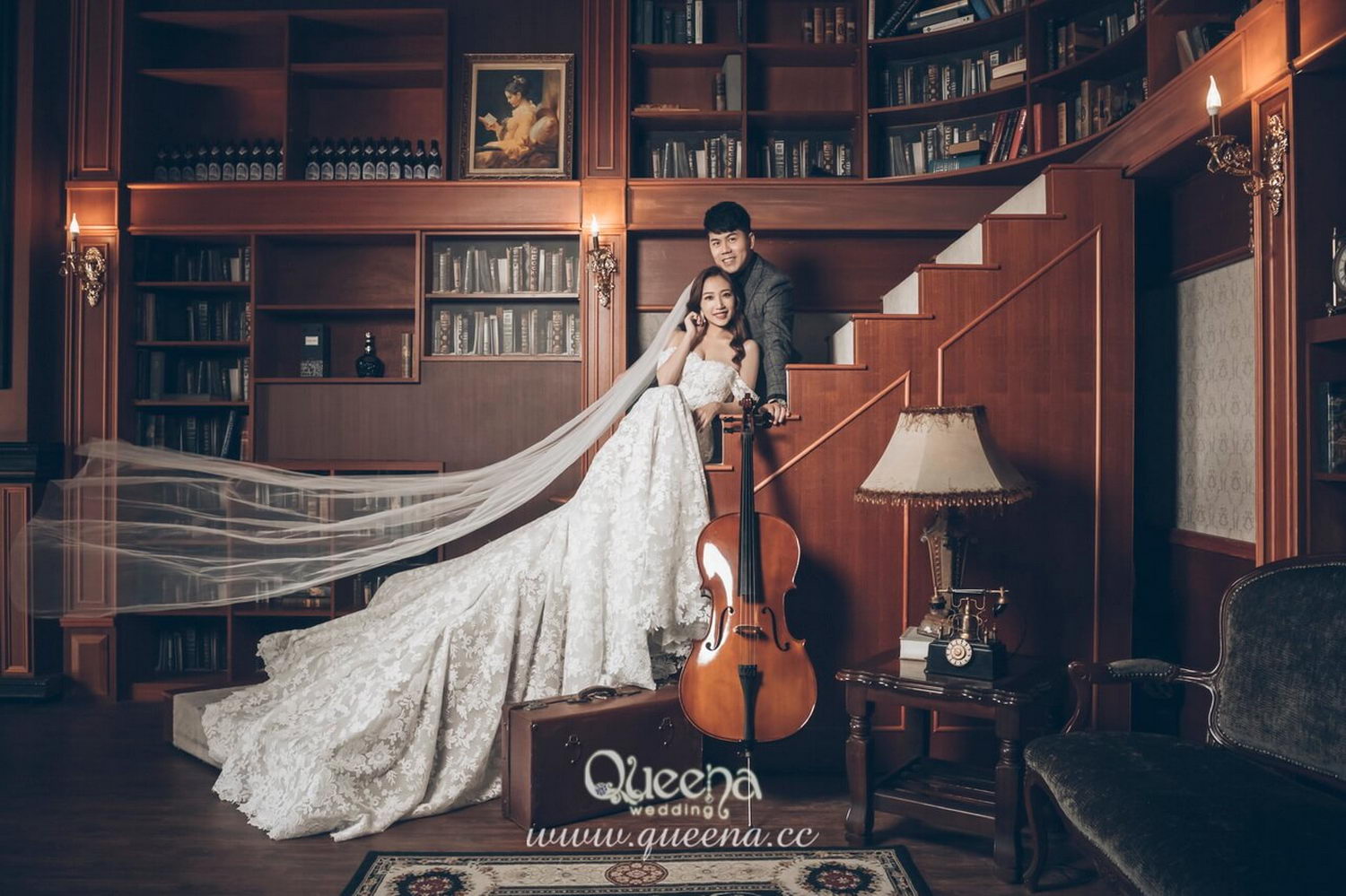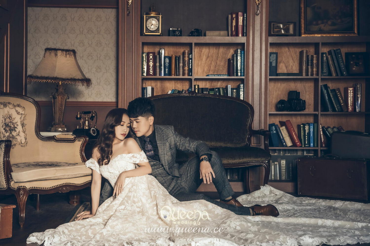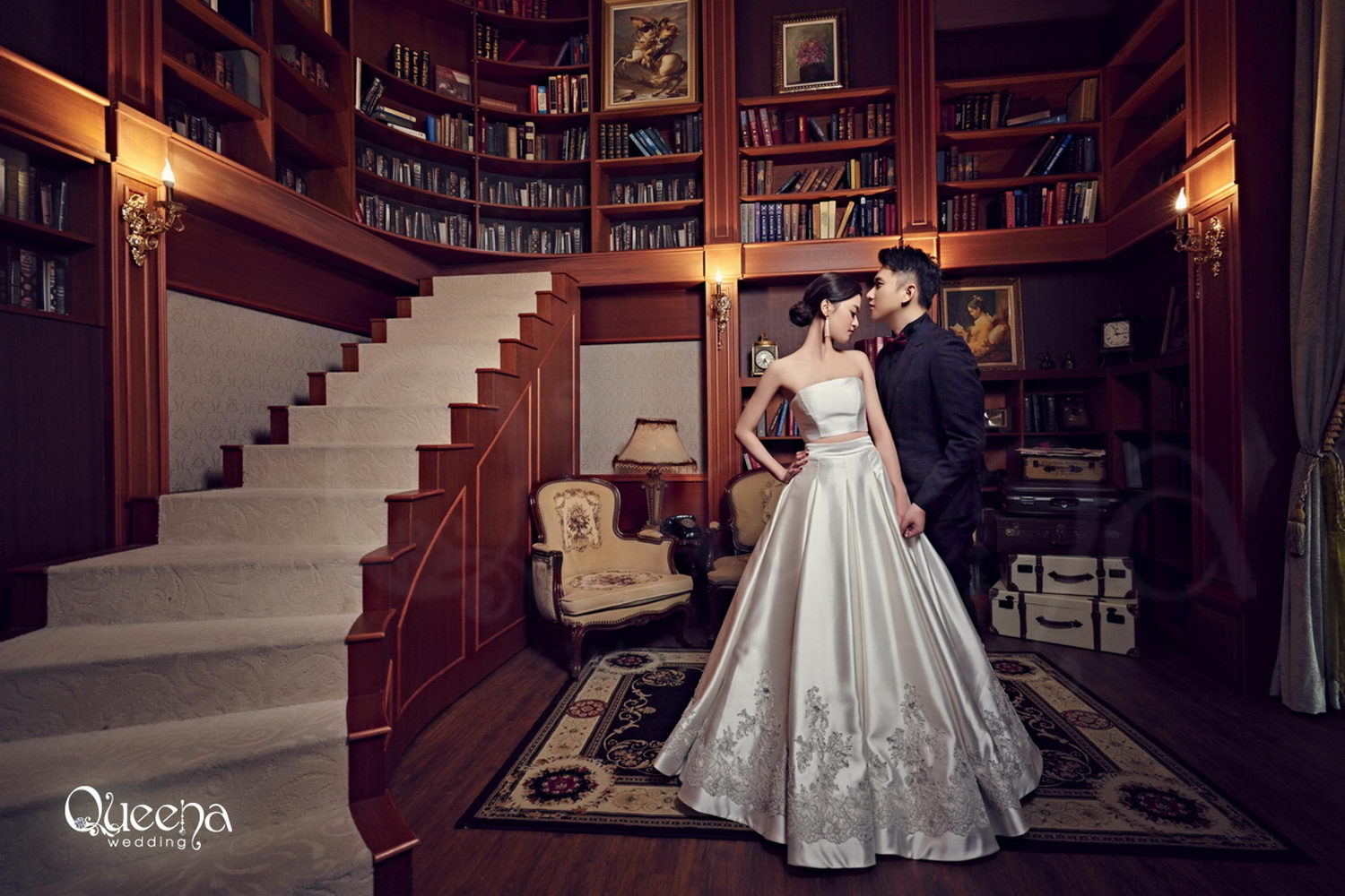 在古典的巴洛克風格書房中,非常適合華麗的婚紗拍攝~