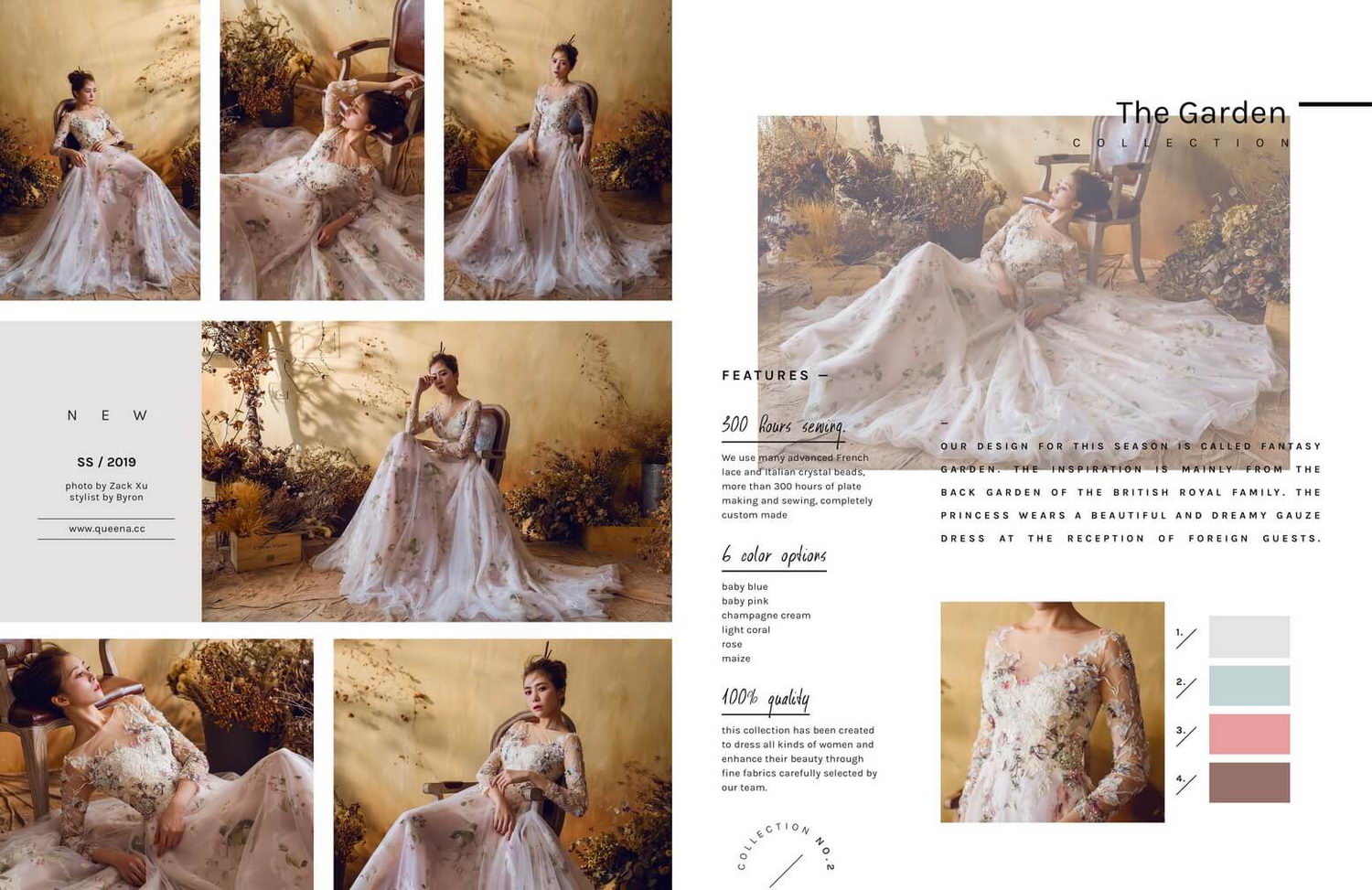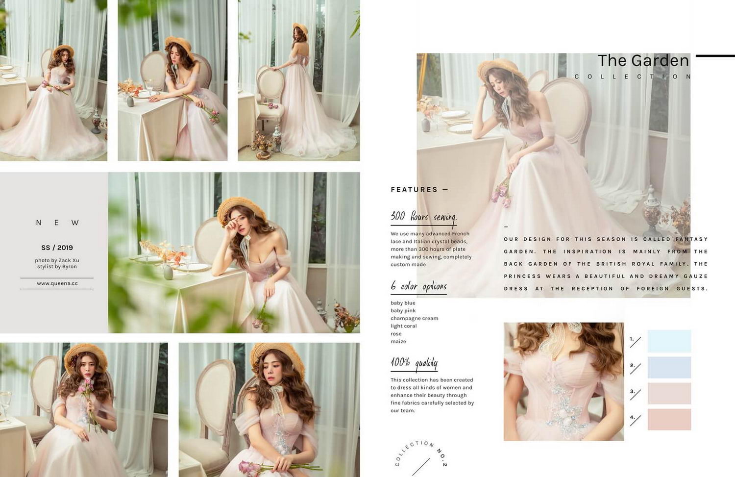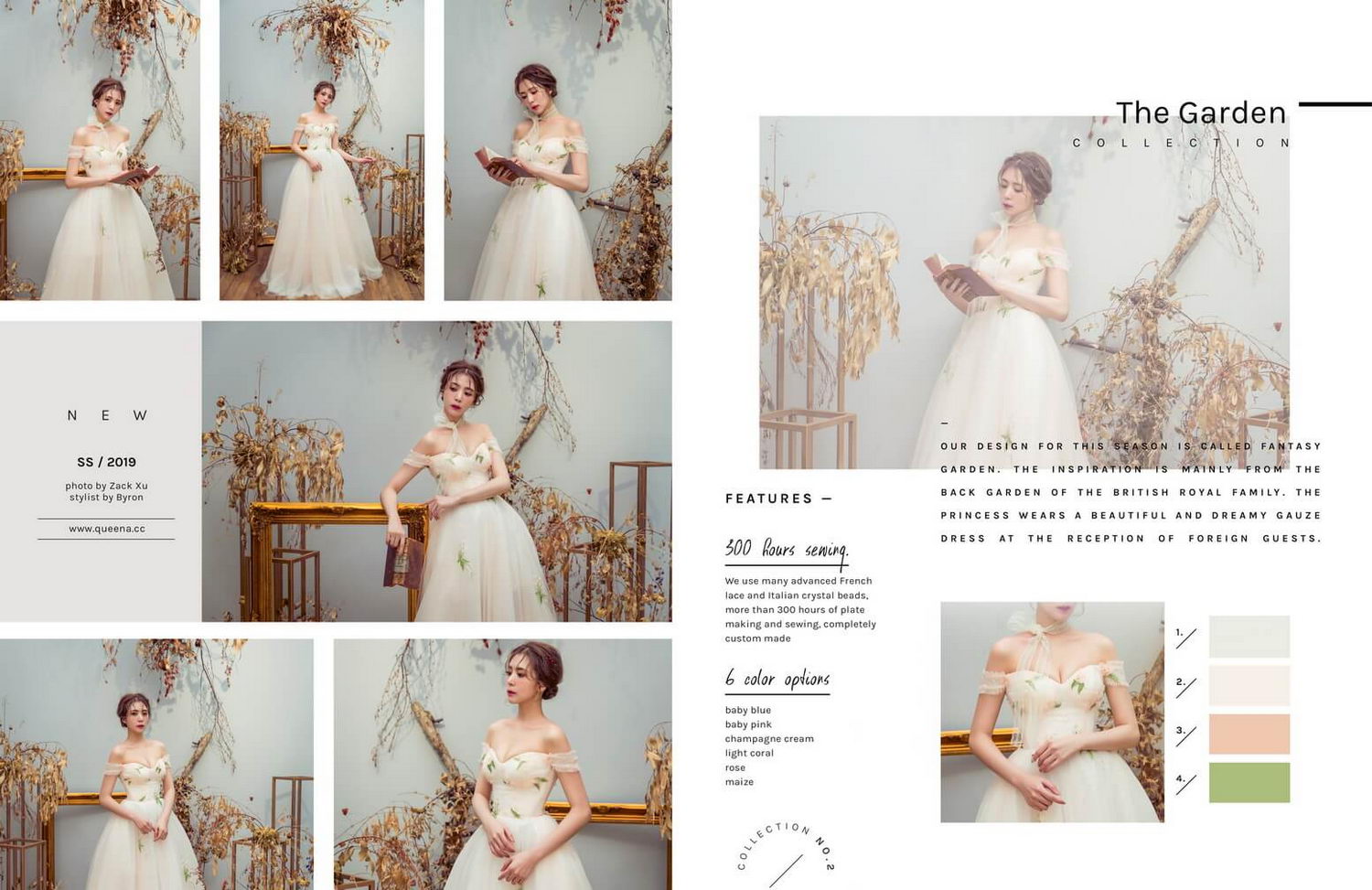 禮服的創作與創意,來自於設計師在生活中的靈感,色系的搭配當然不單只是利用一種色彩學的理念,以上的概念是結合強大的設計團隊共同合作創作!!