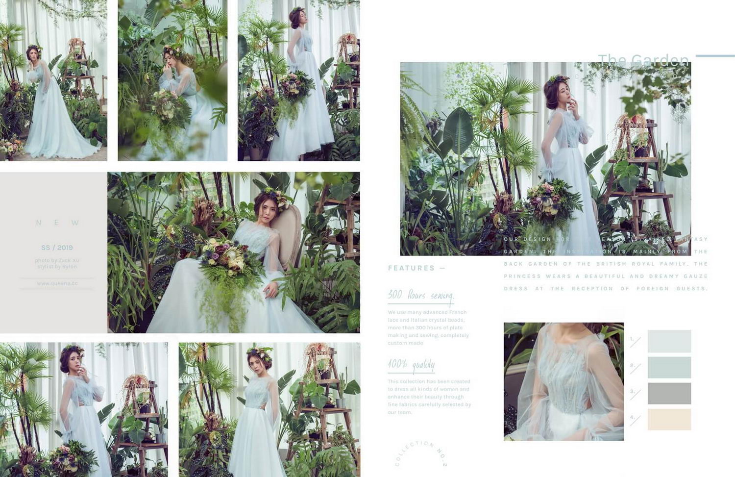 昆娜的自創婚紗品牌,Camelia The Garden 幻想花園系列,以莫蘭迪色為配色基準,打造出柔美低調的奢華美感!