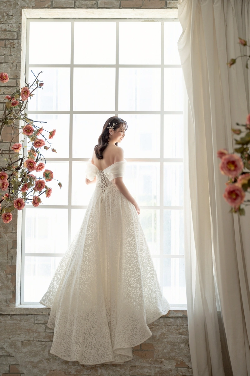 我們的禮服顧問Hanna,雖然前一天她剛拔完智齒…但依然很耐心地介紹,讓我在試穿的過程中非常舒適自在,也會依照我們拍攝的地點給我一些婚紗建議。