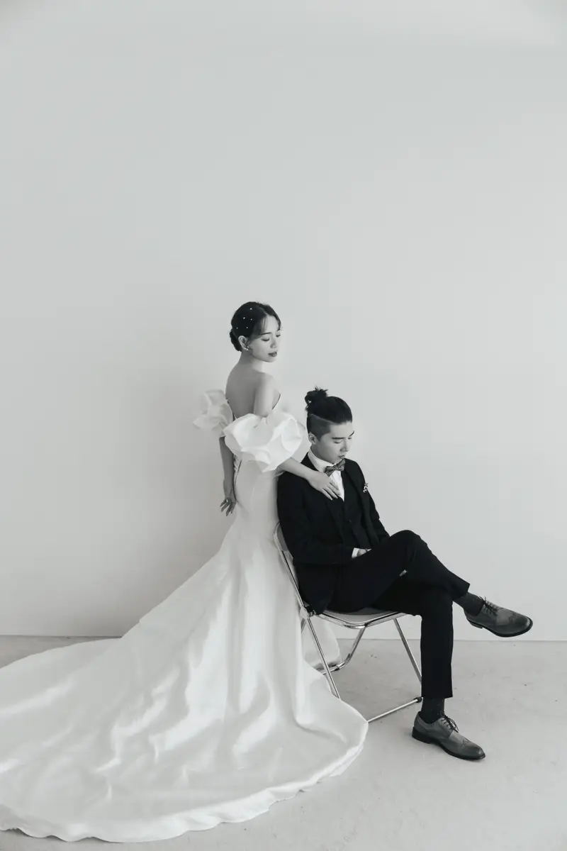 最後終於看到修圖後的成品,美編師林豪強調自然及保留新人的五官特色,不會修到失真或是美肌過頭,照片真的很美很好看,有在意要再調整的部分可以跟美編師溝通,他說明輪廓及光影位置的關係,能調整到什麼程度比較自然,非常的專業細心☺️