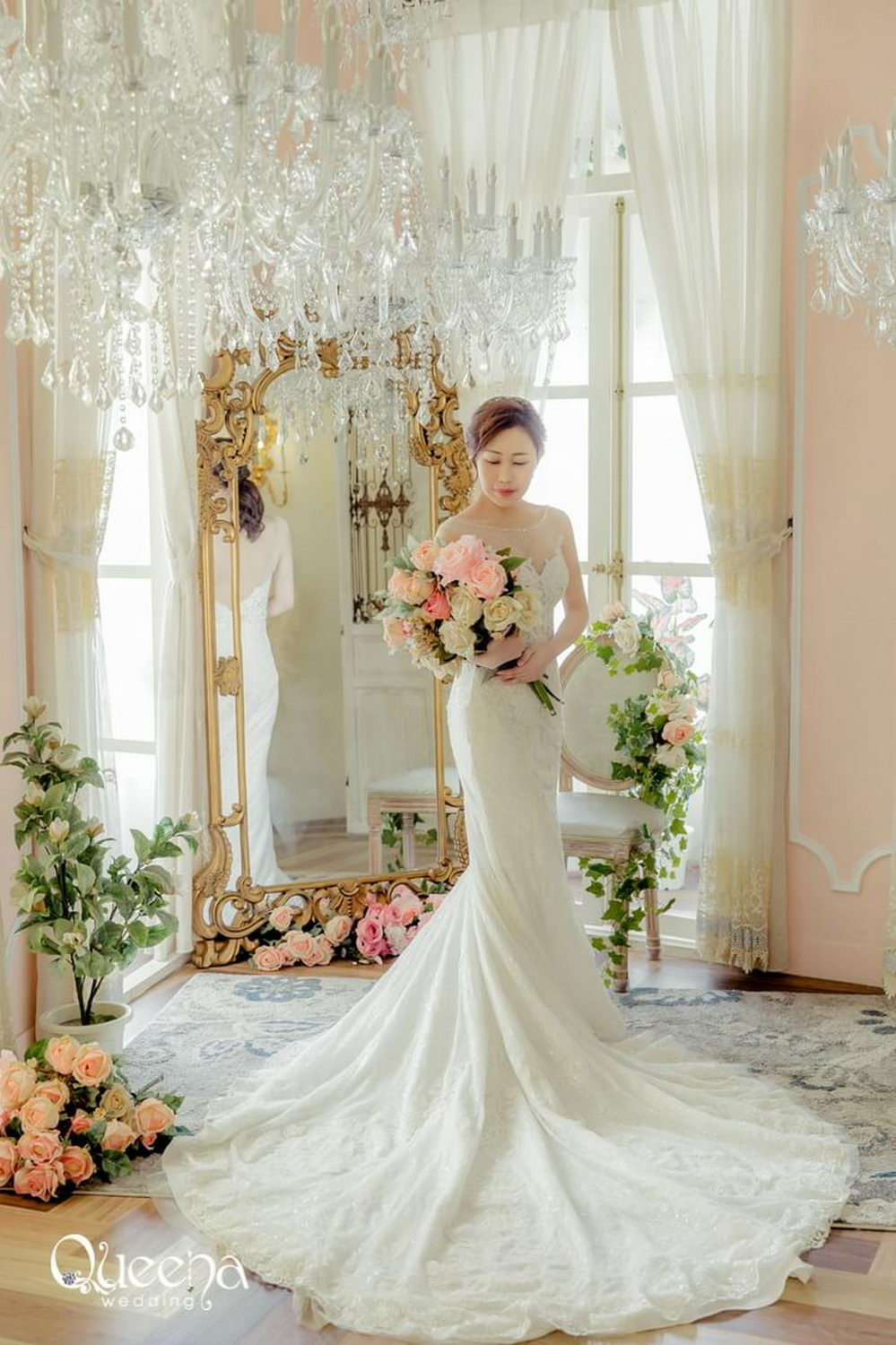 當我挑到結婚婚紗時卻是滿滿的捨不得,像夢一般的美夢,又夢幻又美麗還有一群像朋友般的大家,真心覺得感謝和感動,非常開心我選擇了Queena,它讓我變成了最美最幸福的新娘