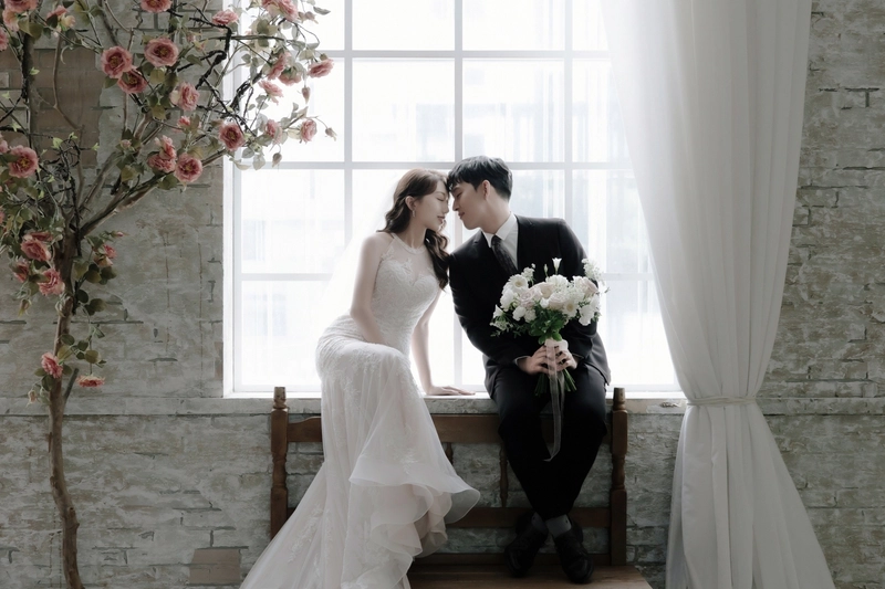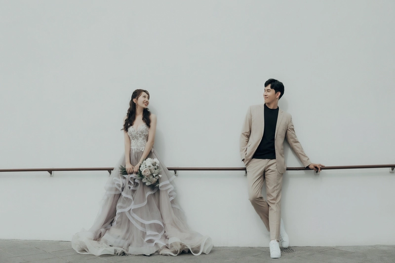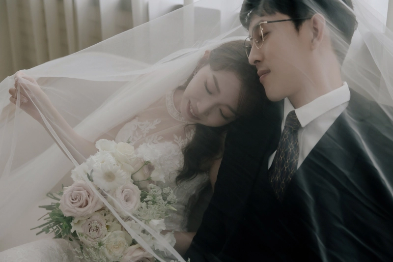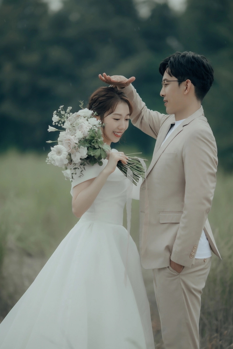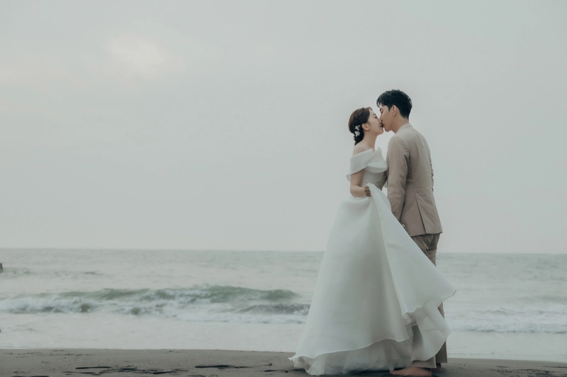 後來我們按照喜歡的拍攝風格選了攝影師ViVi(指定費+3000)和造型師Janna,這兩位可說是店內的黃金組合,為了喬定讓兩位服務,那時候已經排到7月底了,不過我跟老公都覺得要選就要找最滿意的,就這樣賭了一把(也還好後來沒有延期,順利在颱風來之前拍完了,超幸運!)拍攝前我有準備喜歡的風格照片跟ViVi溝通,我們希望是韓系簡單、互動感的風格,他也依照了我們的想法給了很完整的建議,像是要帶什麼鞋子、捧花的樣式,很令人放心。