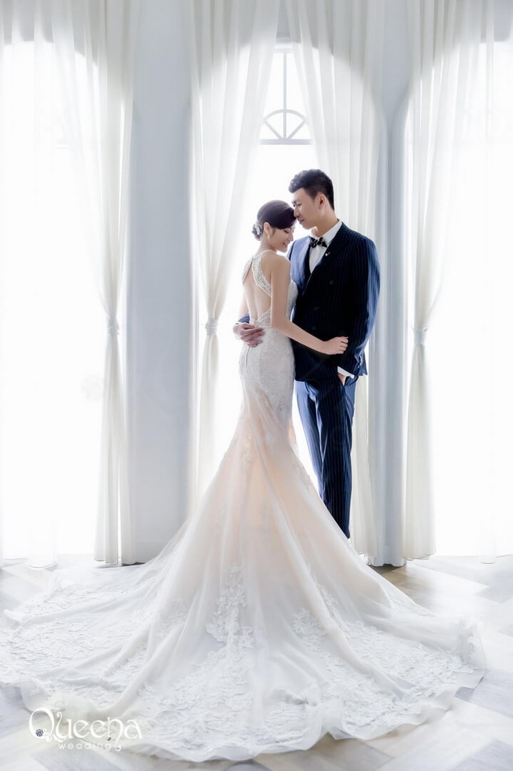 2019.8.3是我們和Queena結緣的開始,當天帶著期待又怕受傷害的心情抵達台中,一進門就碰到Samatha熱情的接待,她細心的介紹各種包套內容和單租禮服方案,然後帶著我們參觀棚內及拍照、宴客禮服,跟她交談過程完全沒有壓力,反而讓我們很放鬆、自在。就在下樓後我立刻跟老公說不用考慮,就決定Queena了!我是服務業,自認為高標準及龜毛的我,Queena在第一關已經滿足我,不管是服務還是硬體,沒什麼好挑剔了!