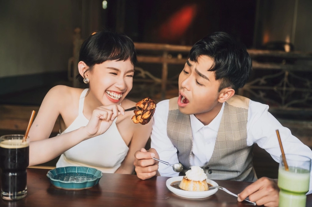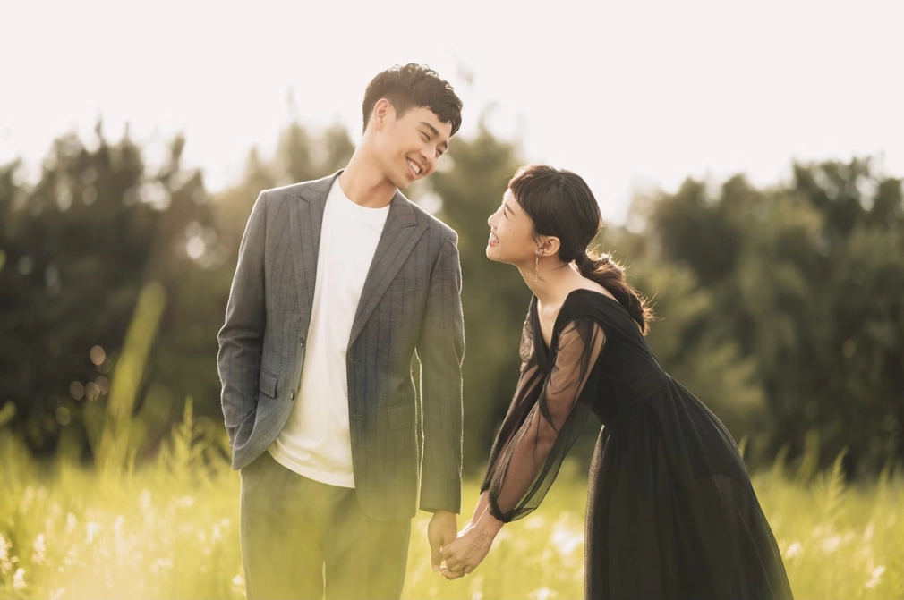 婚紗拍攝當日的團隊共有三位成員——攝影師 Wanda、造型師 子晴(Celine)及燈光師 小至(David)。雖然一開始新郎稍微有點緊張生疏,但在專業又有溫度的團隊帶領下,我們很快就進入拍攝狀態。Wanda 的拍攝節奏俐落且構想精彩;小至的燈光掌握到位又貼心,子晴則隨時細心整理妝髮、調整造型,讓我們能自然展現最放鬆的一面。全天的拍攝過程輕鬆愉快,充滿笑聲與默契,有任何問題也都隨時可以提出討論,甚至於拍